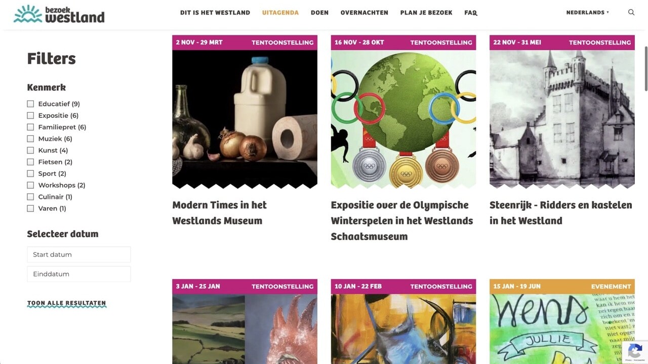 Bezoek Westland is de officiële toeristische website van het Westland. Op deze website vind je alles voor een dagje weg of een vakantie in het Westland.