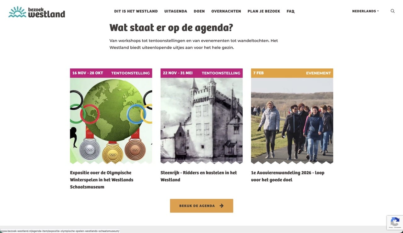 Bezoek Westland is de officiële toeristische website van het Westland. Op deze website vind je alles voor een dagje weg of een vakantie in het Westland.